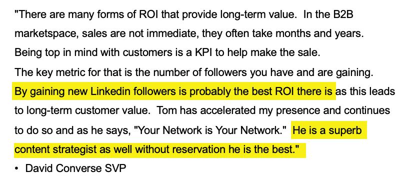 While production of posts is the responsibility of the customer – Tom Cross Group Owner Linkedin profile – with 23,900+ followers will aid in customer content, as needed, to facilitate maximum traction.